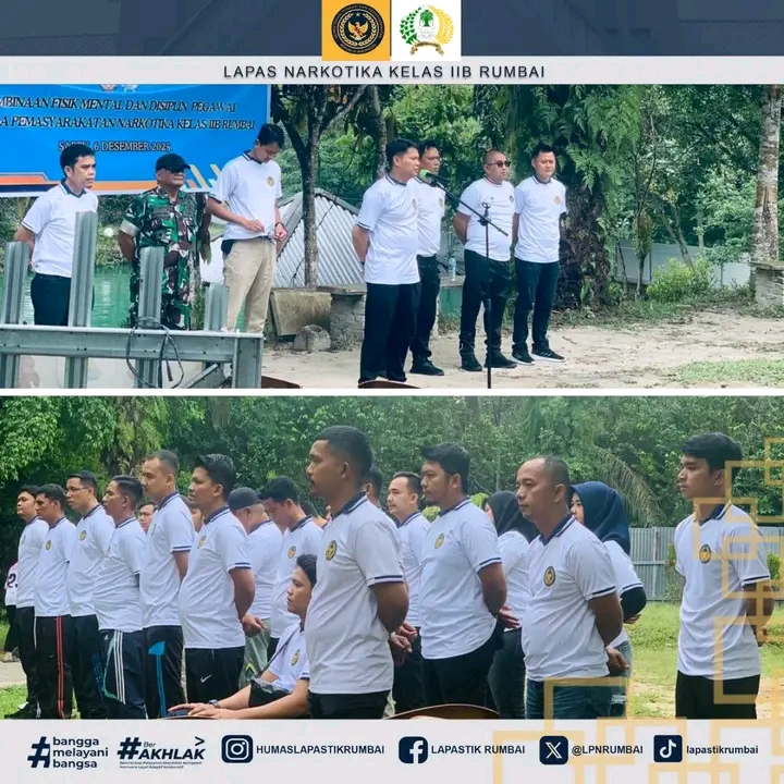 Pekanbaru, Jurnalhukrim.com – Lembaga Pemasyarakatan (Lapas) Narkotika Kelas IIB Rumbai gelar kegiatan Fisik, Mental, dan Disiplin (FMD) di Panorama Alam Impian( Pak Ali), Rumbai, Sabtu (6/12). Kegiatan FMD dirancang untuk meningkatkan kesehatan fisik, ketahanan mental, dan kedisiplinan petugas dalam mendukung tugas-tugas Pemasyarakatan.