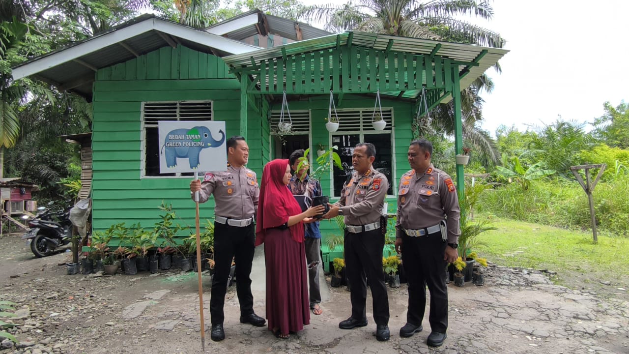 > “Ini merupakan rumah korban laka lantas yang kita perbaiki sekaligus kita tata tamannya melalui program Green Policing. Kegiatan ini tidak hanya sebagai bentuk dukungan kepada korban, tetapi juga sebagai upaya memberikan edukasi keselamatan berlalu lintas dan kepedulian terhadap lingkungan,” ujar Dirlantas Polda Riau.