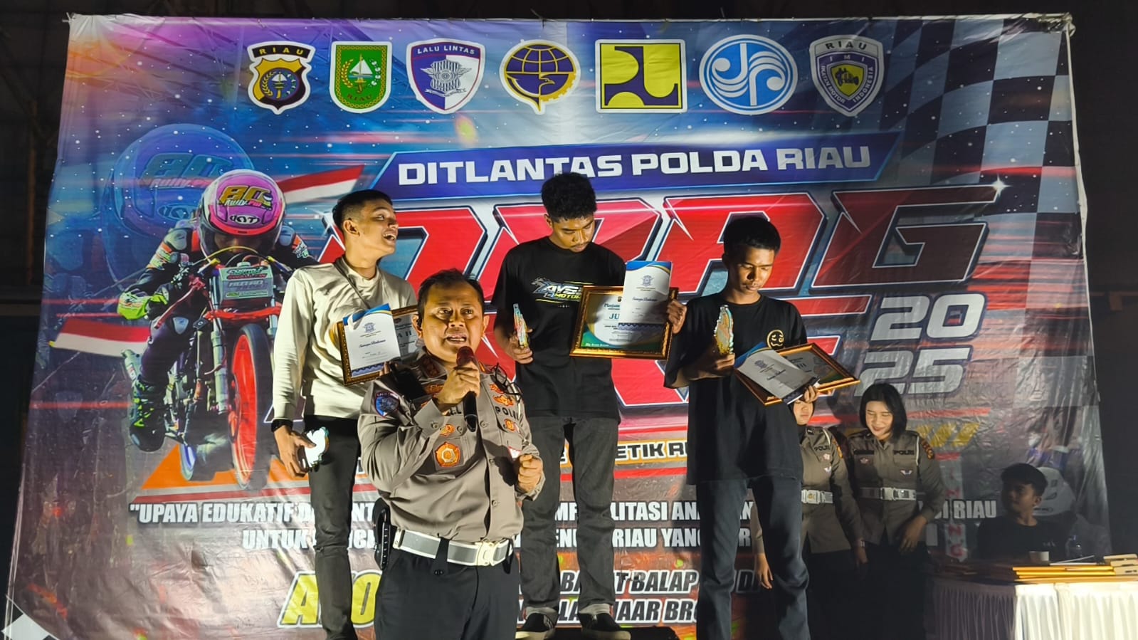 Sementara itu, Alfius, Ketua Joki Bertuah Provinsi Riau, menyampaikan apresiasi kepada Kapolda Riau Irjen Pol Herry Heryawan, Dirlantas Polda Riau Kombes Pol Taufiq Lukman Nurhidayat, serta tim yang telah memberikan ruang pembinaan bagi para pembalap.