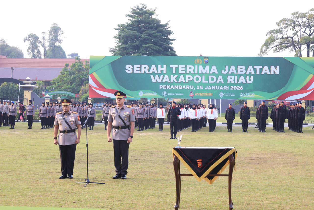 Upacara sertijab wakapolda ini digelar di halaman Mapolda Riau, dipimpin langsung oleh Kapolda Riau Irjen Pol Herry Heryawan, Rabu (14/1/2026) pagi. Kegiatan ini turut dihadiri pada pejabat utama (PJU) Polda Riau.