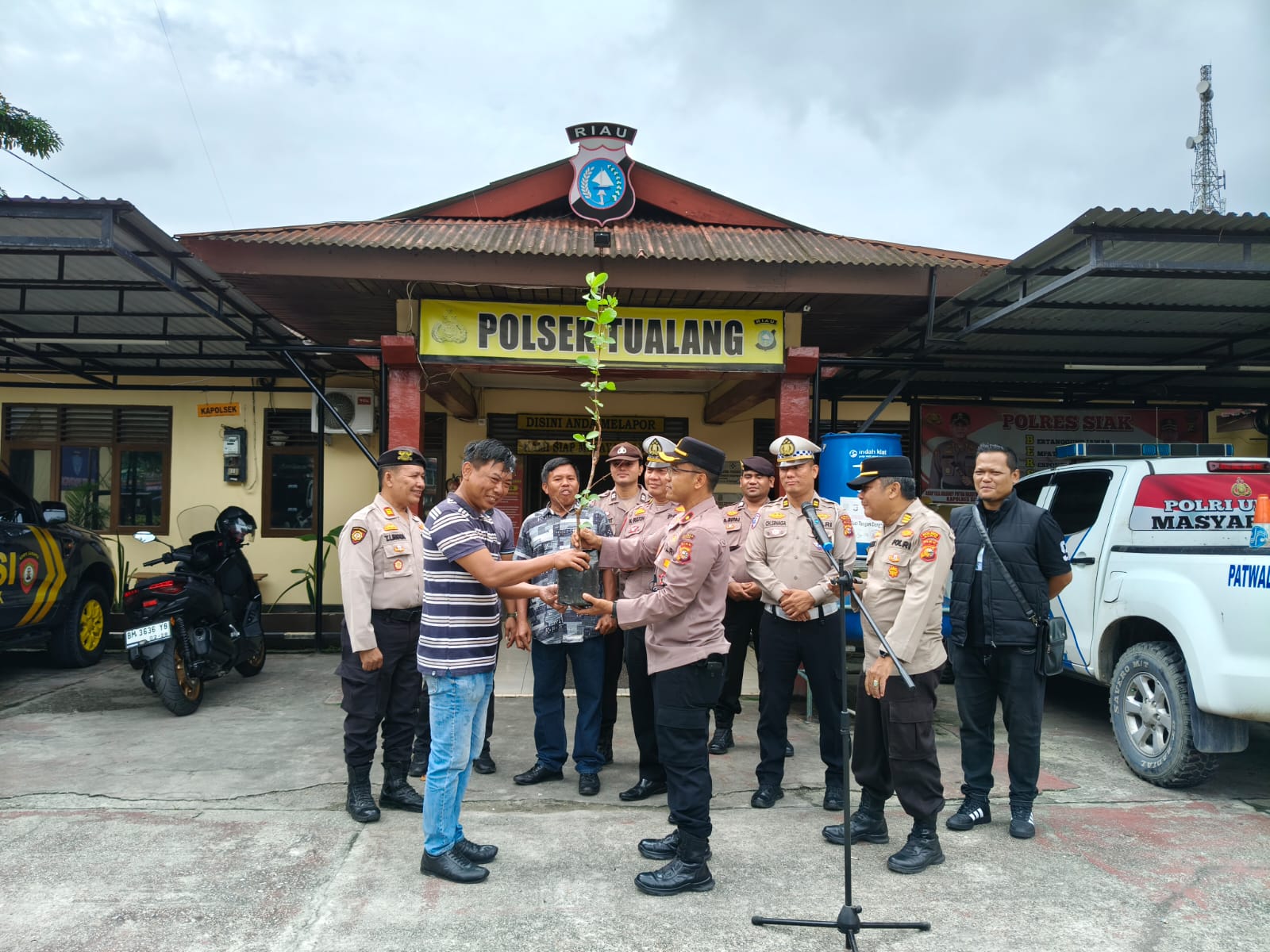 Pemberian bibit pohon tersebut diberikan kepada Aiptu Asnelzon, S.H., usai pelaksanaan apel pagi di Mapolsek Tualang. Kegiatan ini turut didampingi para Kanit, Panit, Kasi, serta seluruh personel Polsek Tualang.