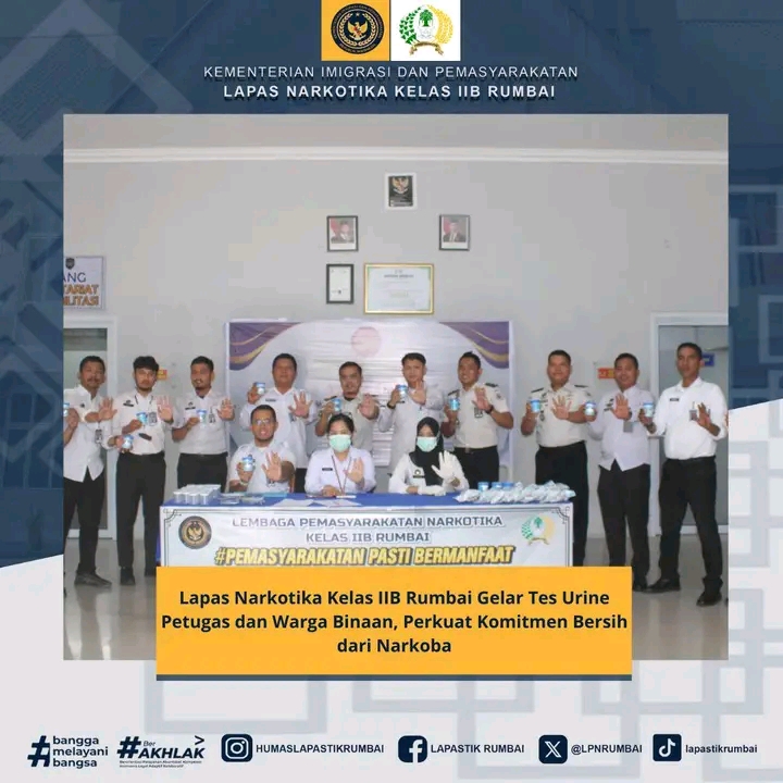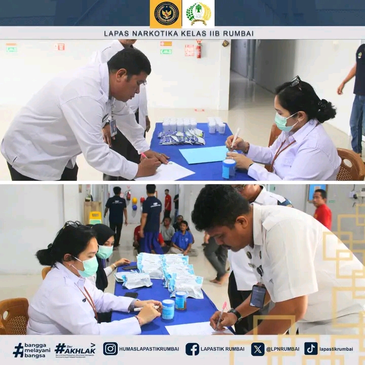 Lapas Narkotika Kelas IIB Rumbai Gelar Tes Urine Petugas dan Warga Binaan, Perkuat Komitmen Bersih dari Narkoba
