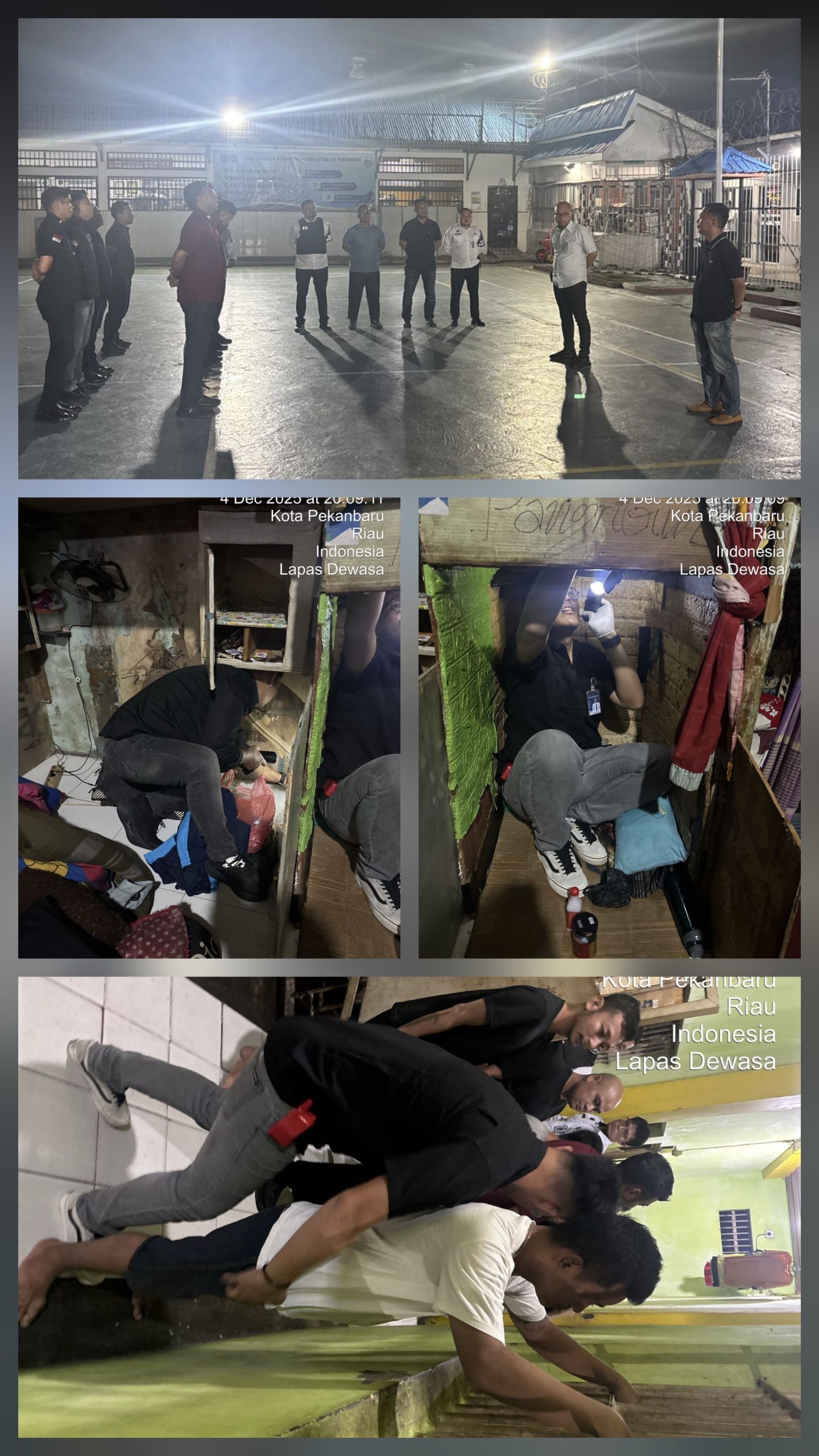 Pekanbaru, Jurnalhukrim.com – Lembaga Pemasyarakatan (Lapas) Kelas IIA Pekanbaru melaksanakan razia secara mendadak di blok hunian Warga Binaan Pemasyarakatan (WBP) pada Kamis malam (4/12) sekitar pukul 20.00 WIB. Kegiatan ini melibatkan puluhan personel petugas pemasyarakatan, bertujuan untuk mendeteksi dini potensi gangguan keamanan dan ketertiban (kamtib) serta memberantas peredaran barang terlarang seperti narkoba, handphone, dan senjata tajam.