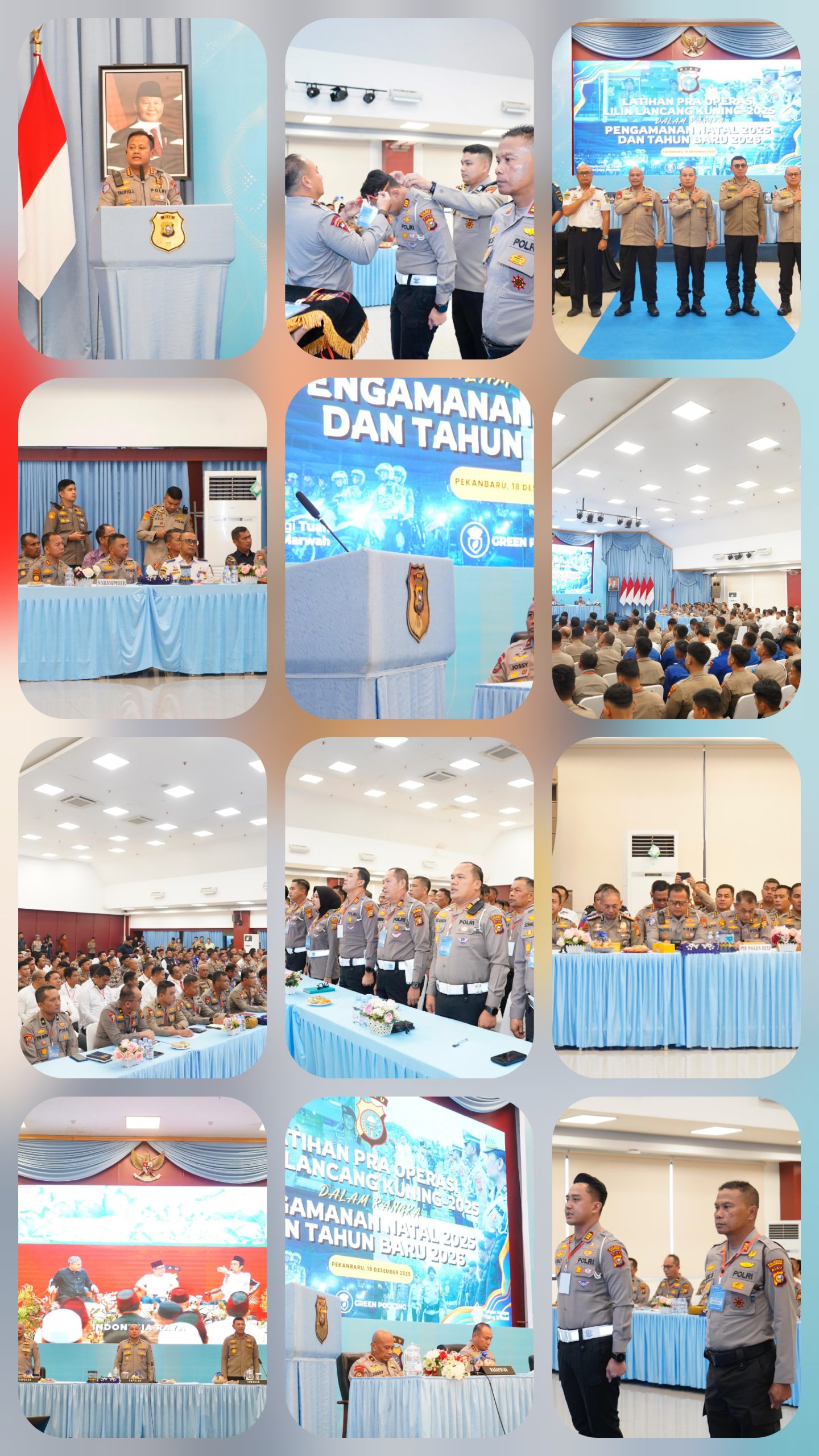 Pekanbaru, Jurnalhukrim.com – Kepolisian Daerah Riau secara resmi menggelar Pembukaan Latihan Pra Operasi (Latpraops) Lilin Lancang Kuning Tahun 2025 pada Kamis (18/12/2025) pukul 07.00 hingga 08.30 WIB bertempat di Aula Tribrata Lantai 5 Polda Riau.