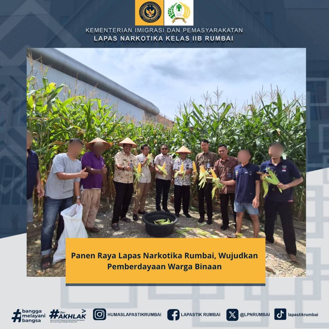 Pada kesempatan ini Kepala Lapas Narkotika Rumbai, Reinhards Indra Pitoy, “Hasil panen ini merupakan wujud nyata implementasi Program Akselerasi Menteri Imipas dalam pemberdayaan Warga Binaan. Dengan jumlah panen yang cukup besar, saya bangga Lapas Narkotika Rumbai turut berkontribusi dalam mewujudkan ketahanan pangan nasional,” ujarnya