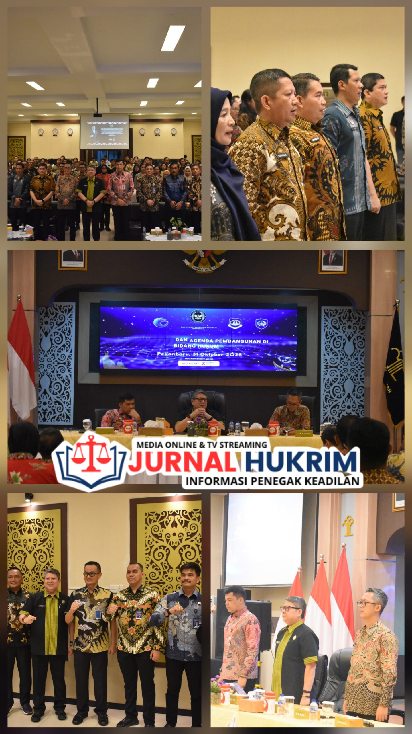 Pekanbaru, Jurnalhukrim.com – Kepala Lembaga Pemasyarakatan (Lapas) Kelas IIA Pekanbaru, Yuniarto, turut hadir dan berpartisipasi dalam kegiatan Rapat Sinkronisasi dan Koordinasi Pelaksanaan Tugas dan Fungsi Kementerian Koordinator Bidang Hukum, Hak Asasi Manusia, Imigrasi, dan Pemasyarakatan (Kemenko Kumham Imipas) yang berlangsung di Aula Ismael Saleh Kanwil Hukum Riau, Jumat (31/10/2025).