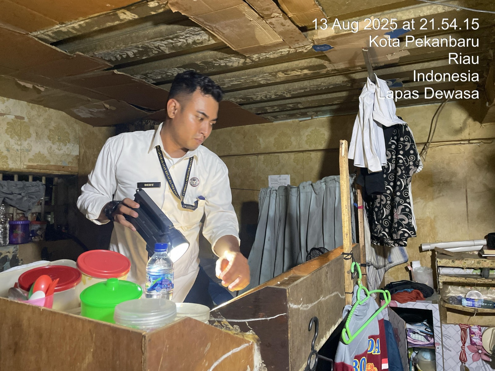 Pekanbaru, Jurnalhukrim.com – Dalam rangka menjaga lingkungan Lembaga Pemasyarakatan (Lapas) Kelas IIA Pekanbaru tetap aman dan kondusif, serta mencegah terjadinya gangguan keamanan dan ketertiban (kamtib), Lapas Kelas IIA Pekanbaru kembali menggelar razia kamar hunian warga binaan. Ini merupakan bentuk komitmen melaksanakan Arahan 13 (tiga belas) Program Akselerasi Menteri Imigrasi dan Pemasyarakatan khususnya pada poin 1 (satu) yakni Memberantas Peredaran Narkoba dan Pelaku Penipuan dengan berbagai modus, Rabu (13/08).