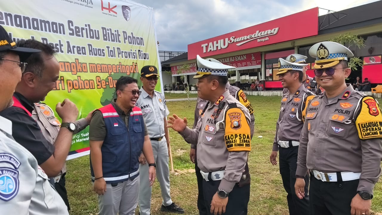 Sebagai rangkaian memperingati Hari Pohon Sedunia, Ditlantas Polda Riau bersama PT HK, PT Jasa Raharja, tokoh masyarakat, perwakilan driver, serta komunitas pecinta alam melaksanakan penanaman pohon di Rest Area KM 45 B. Seluruh kegiatan berjalan tertib, aman, dan lancar.(***)