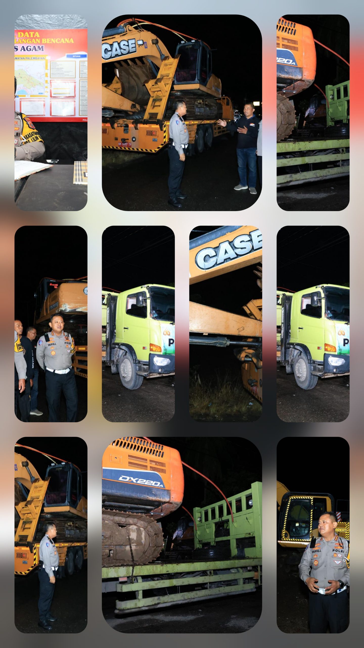 “Kami membawa amanah dari Bapak Kapolda Riau untuk menyerahkan bantuan tiga alat berat. Alat-alat ini akan difungsikan di Kecamatan Palembayan guna membantu masyarakat melakukan rehabilitasi, pembersihan, maupun perbaikan fasilitas umum yang mendesak,” ujar Taufiq.