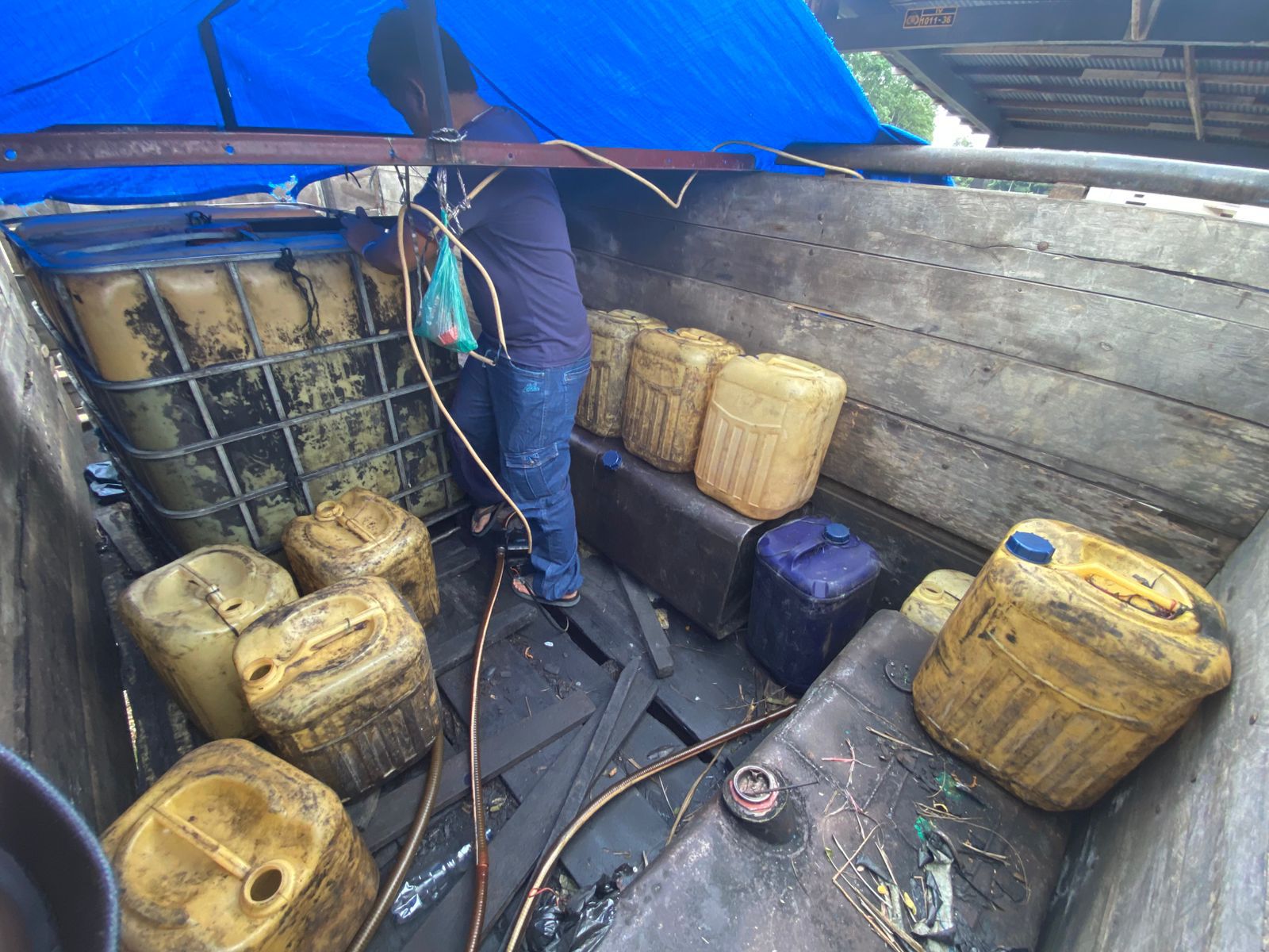 Sekitar pukul 11.00 WIB, petugas menemukan dua pria yang diduga melakukan penyalahgunaan BBM solar. Keduanya berinisial A (48), warga Kota Padang, Sumatera Barat, dan YA (37), warga Kecamatan Pangean, Kuantan Singingi. Keduanya langsung diamankan tanpa perlawanan.