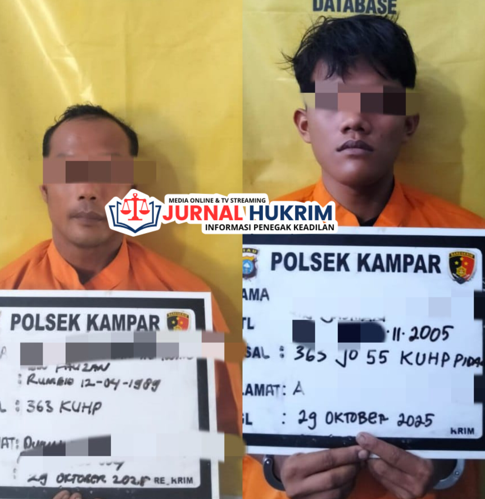 KAMPAR, Jurnalhukrim.com – Polsek Kampar berhasil amankan dua orang sekawasan spesialis pencurian dan pemberatan dari minyak solar, baterai mobil, vleg mobil, sepeda motor dan lainnya yang sudah beraksi di 15 TKP, Rabu (29/10/2025) sekira pukul 18.30 Wib.