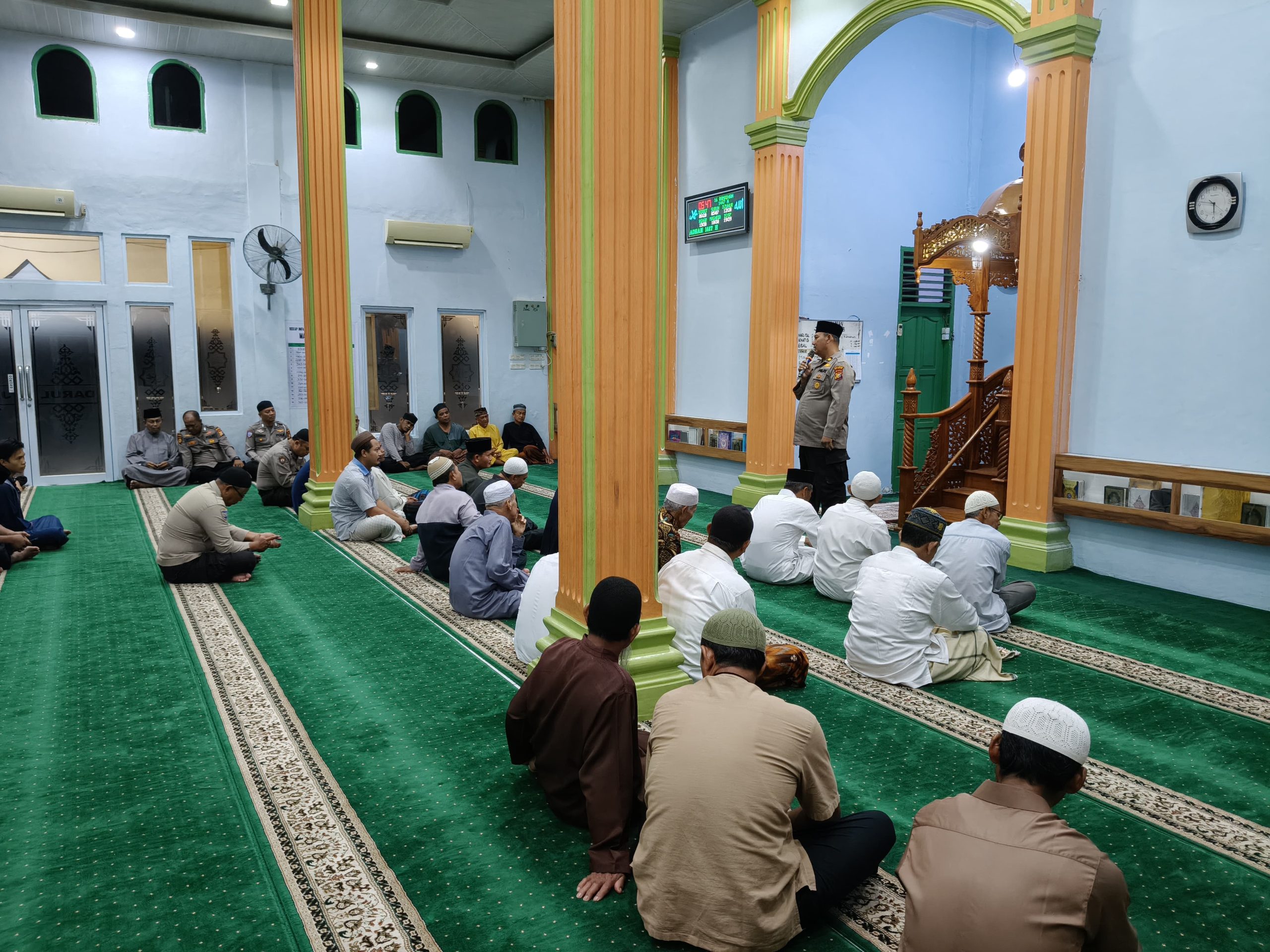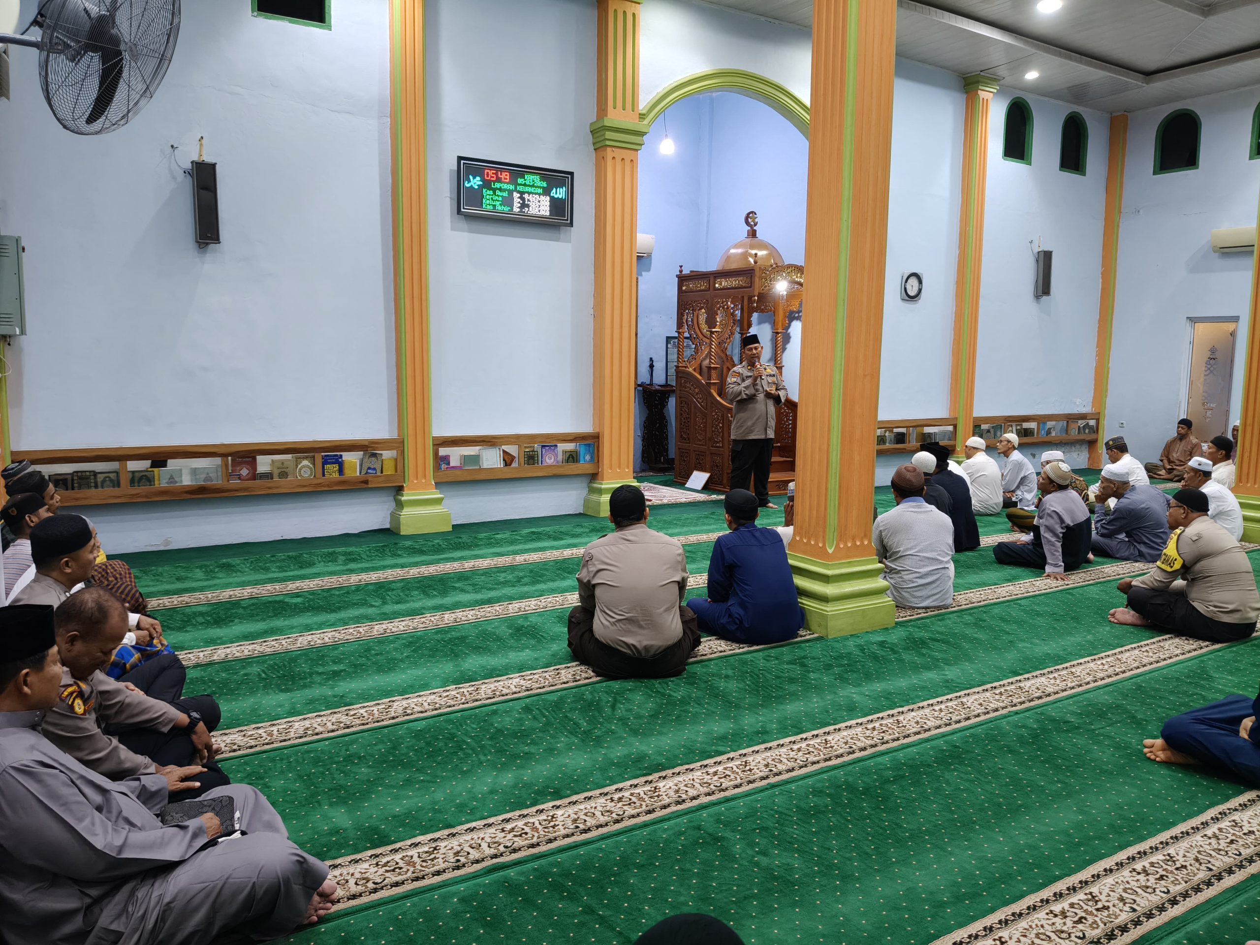 Dalam kesempatan tersebut, personel Polsek Tualang menyampaikan sosialisasi kepada pengurus masjid, ketua MDA, serta jamaah yang memiliki anak usia sekolah dasar agar dapat berpartisipasi dalam lomba Dai Cilik bertema Green Policing.