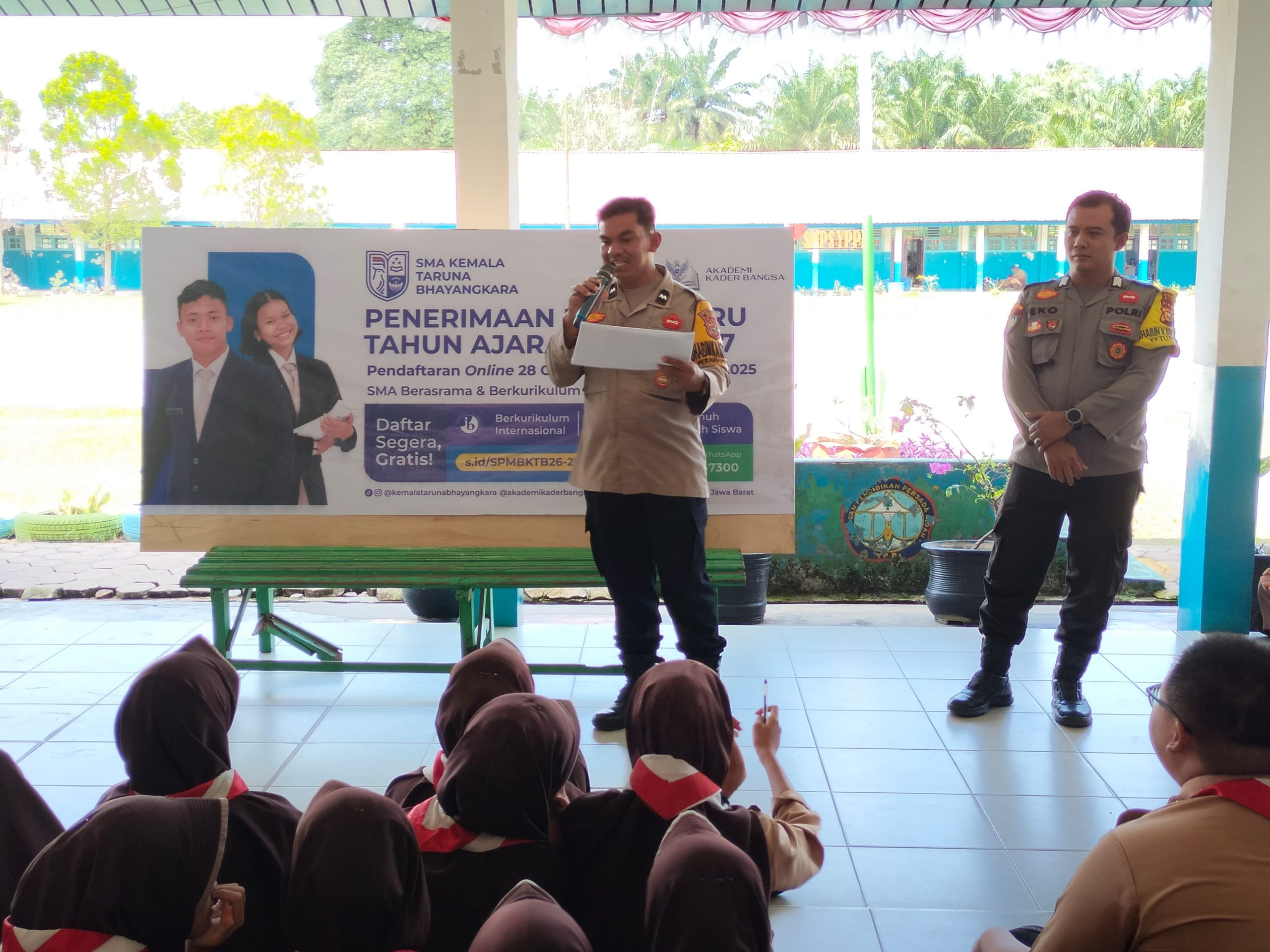 Dalam kegiatan tersebut, Aipda Hendri Hidayat, S.H bertindak sebagai narasumber dan memberikan penjelasan tentang tujuan, sistem pembinaan, serta peluang yang ditawarkan oleh SMA Kemala Taruna Bhayangkara. Sekolah ini menjadi wadah pembentukan karakter generasi muda yang disiplin, berintegritas, serta memiliki jiwa nasionalisme dan kepedulian sosial tinggi.