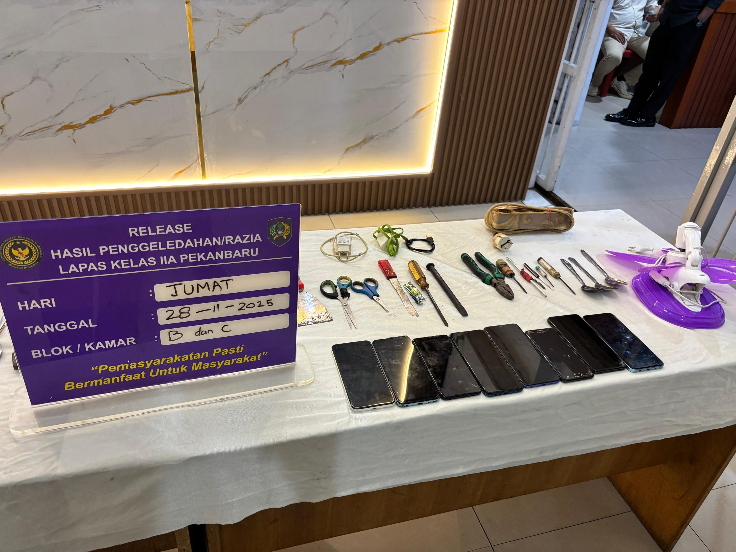 Maizar menyampaikan apresiasi atas kerja sama seluruh instansi yang terlibat. “Ini bukti nyata sinergitas TNI-Polri dan Pemasyarakatan dalam menjaga keamanan di Riau, khususnya di Lapas Pekanbaru yang saat ini berstatus overkapasitas lebih dari 200%. Razia seperti ini akan terus kami gelar secara rutin dan mendadak agar efek jera benar-benar tercipta,” tegasnya.