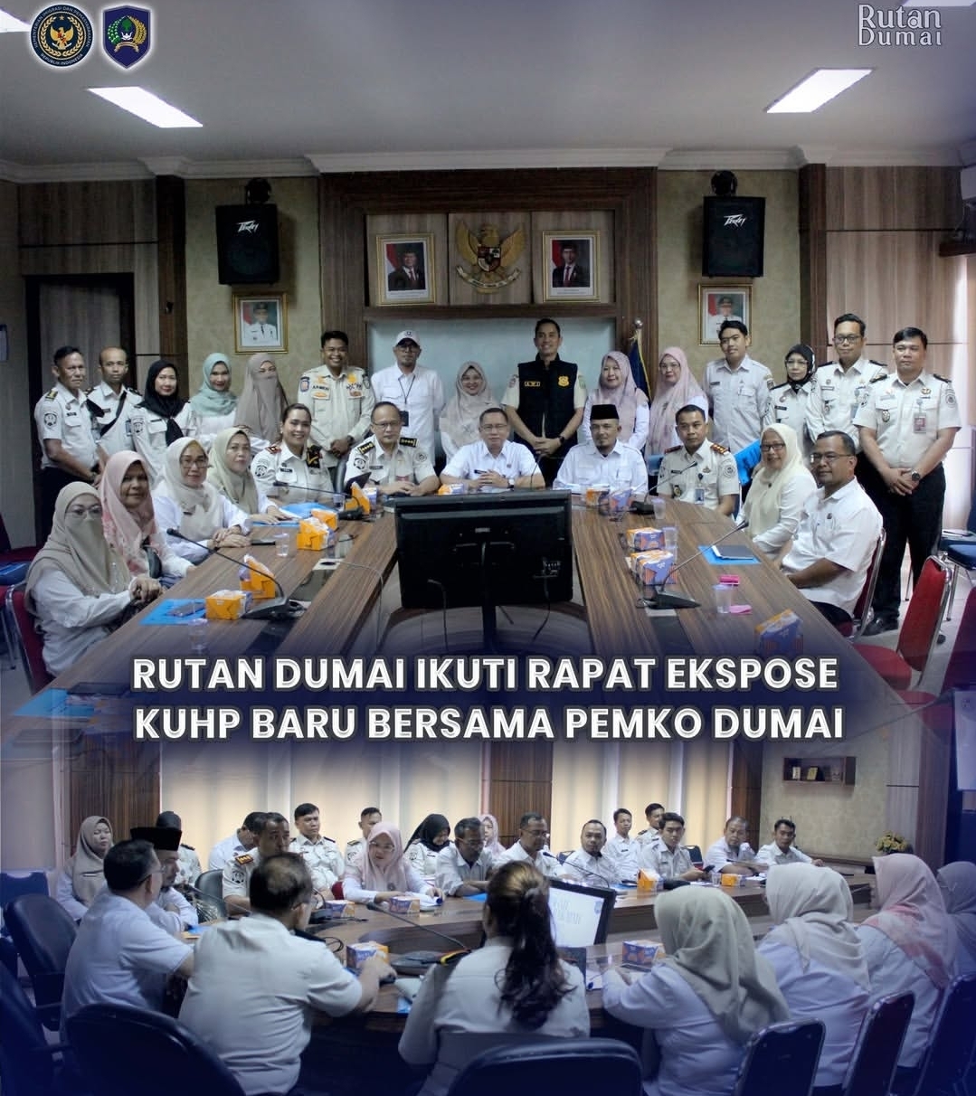 Kegiatan Rapat Ekspose KUHP Baru ini dilaksanakan di Ruang Teratai, Kantor Wali Kota Dumai. Melalui kegiatan ini, diharapkan terbangun sinergi yang kuat antara Bapas, Rutan, dan Pemerintah Kota Dumai guna mendukung pelaksanaan sistem pemidanaan yang lebih efektif, berkeadilan, dan berorientasi pada reintegrasi sosial. lebih sedikit