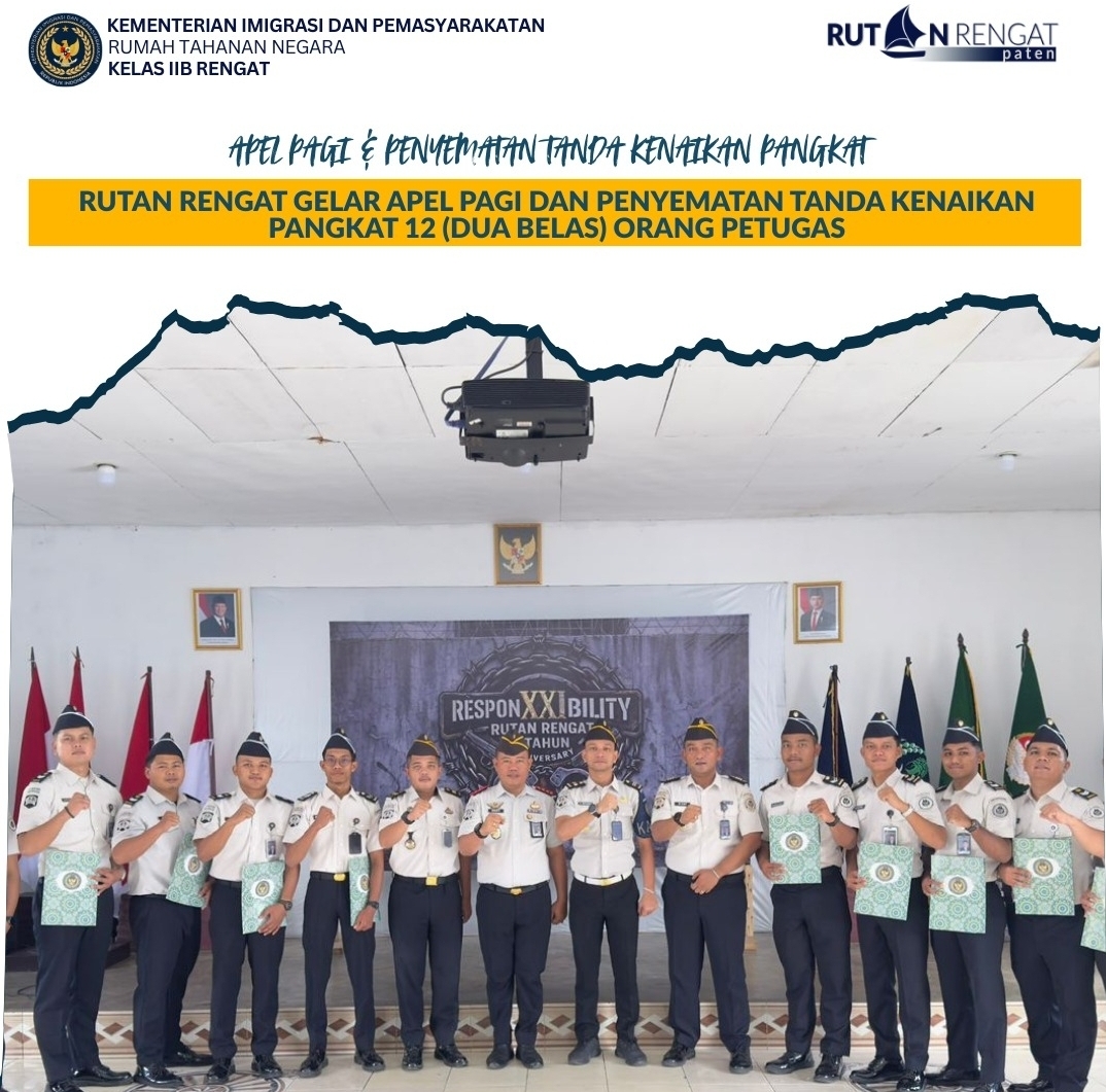 Rengat, Jurnalhukrim.com – Selasa (03 Maret 2026) Rumah Tahanan Negara Kelas IIB Rengat menggelar apel pagi yang dirangkaikan dengan prosesi penyematan tanda kenaikan pangkat kepada 12 (dua belas) orang petugas, bertempat di halaman Rutan Rengat.