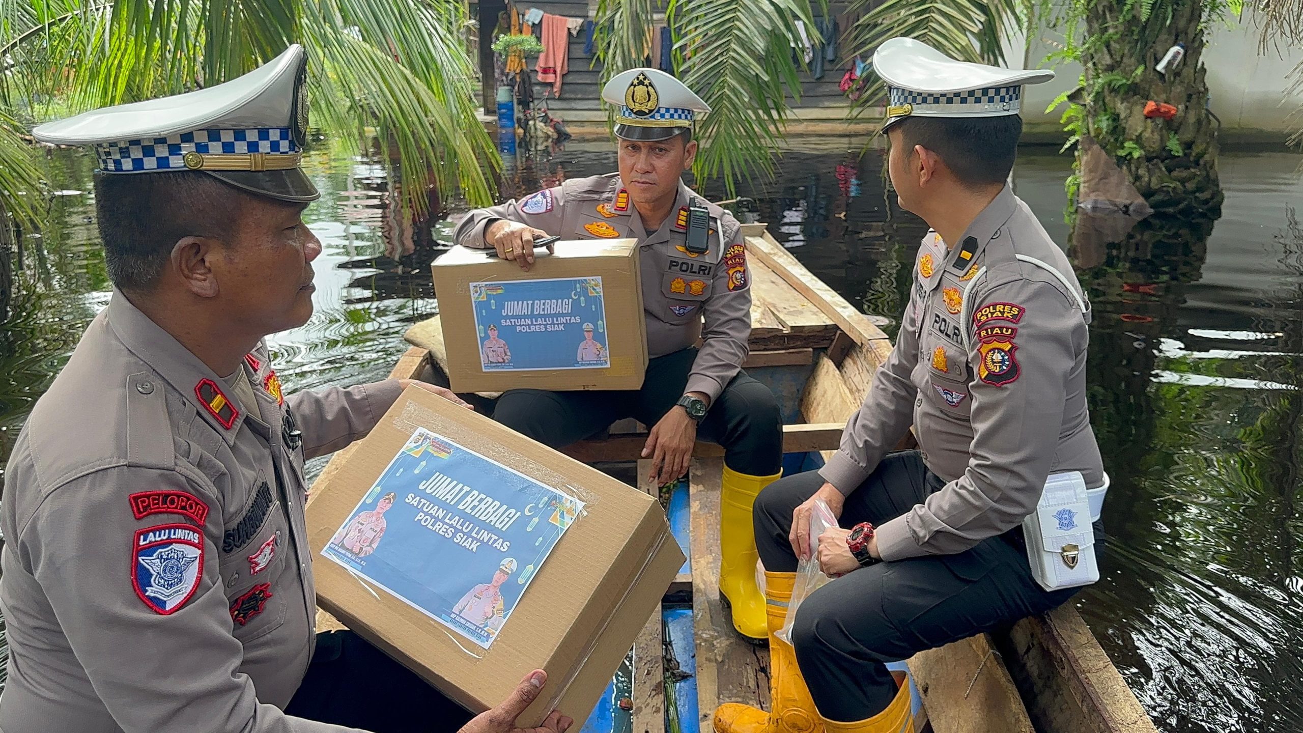 Kapolres Siak, AKBP Eka Ariandy Putra, SH, SIK, M.Si, yang dikonfirmasi melalui Kasat Lantas Polres Siak, AKP Kaliman Siregar, mengungkapkan bahwa “kedua keluarga tersebut terjebak di rumah mereka karena genangan air yang cukup tinggi, sehingga tidak dapat menerima pasokan sembako.”