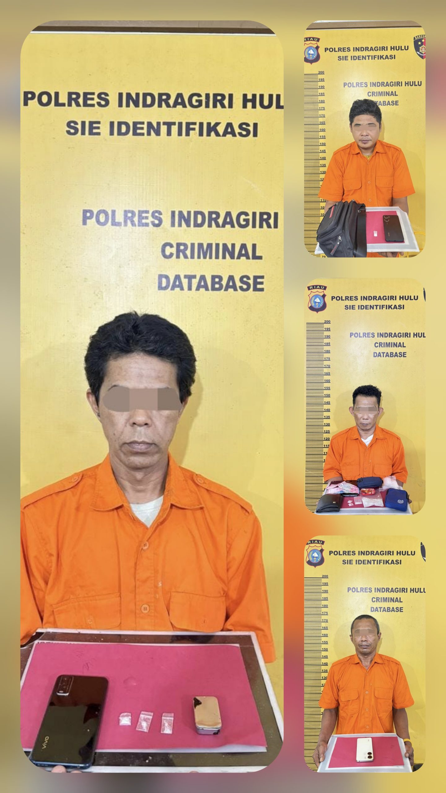 Hasilnya, sekitar pukul 15.00 WIB, petugas berhasil mengamankan seorang pria berinisial RSH alias Itang (46) , yang diketahui merupakan oknum PNS di Dinas Pertanian Kabupaten Inhu. Saat hendak diamankan, tersangka sempat membuang sebuah kotak kaleng kecil berwarna silver yang berisi tiga bungkus sabu dengan berat kotor 0,48 gram.