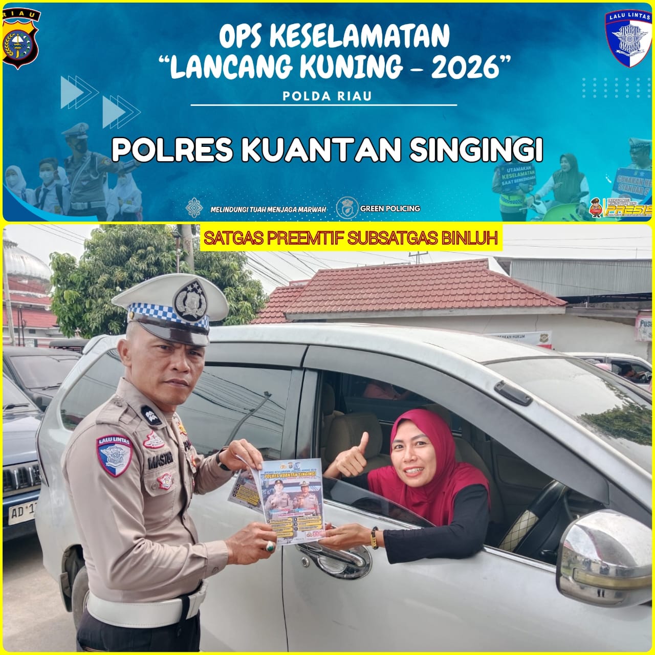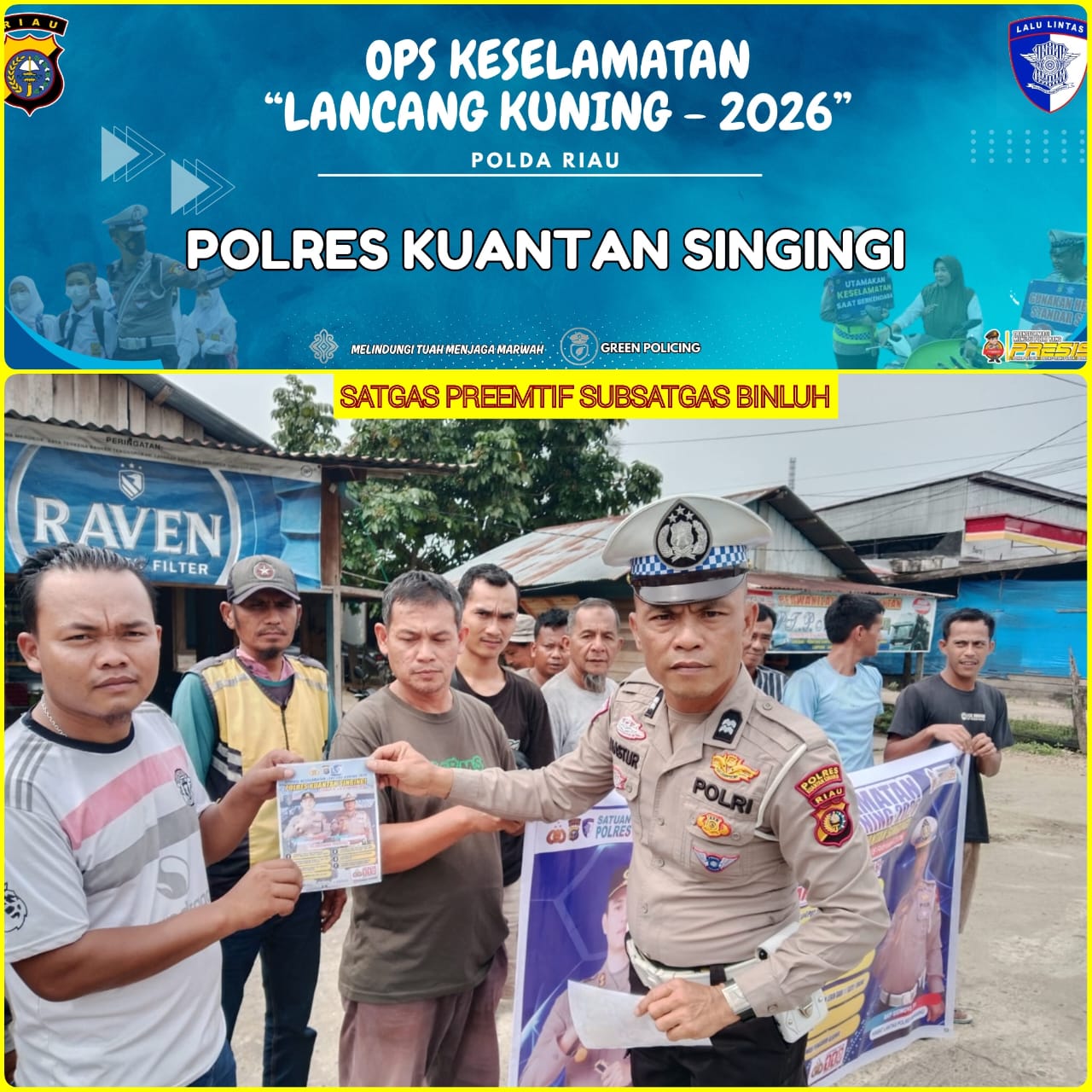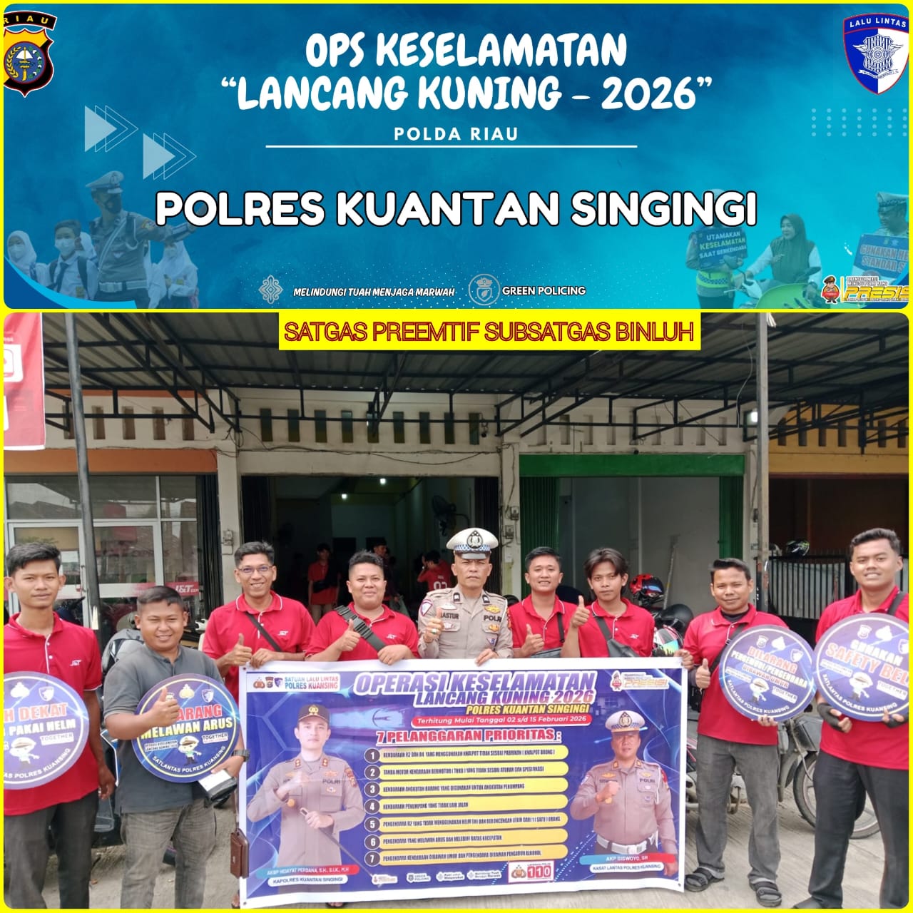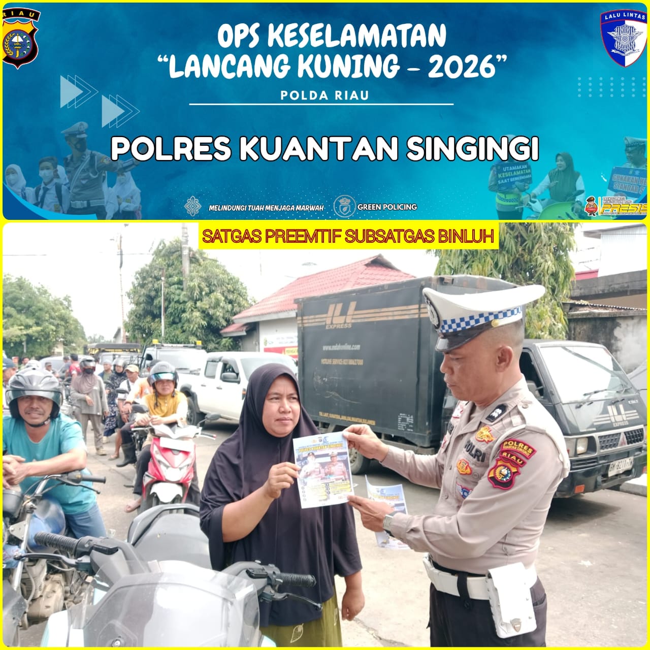 Polres Kuantan Singingi mengajak seluruh elemen masyarakat untuk bersama-sama mendukung pelaksanaan Operasi Keselamatan Lancang Kuning 2026 dengan menjadi pelopor keselamatan berlalu lintas dalam kehidupan sehari-hari.