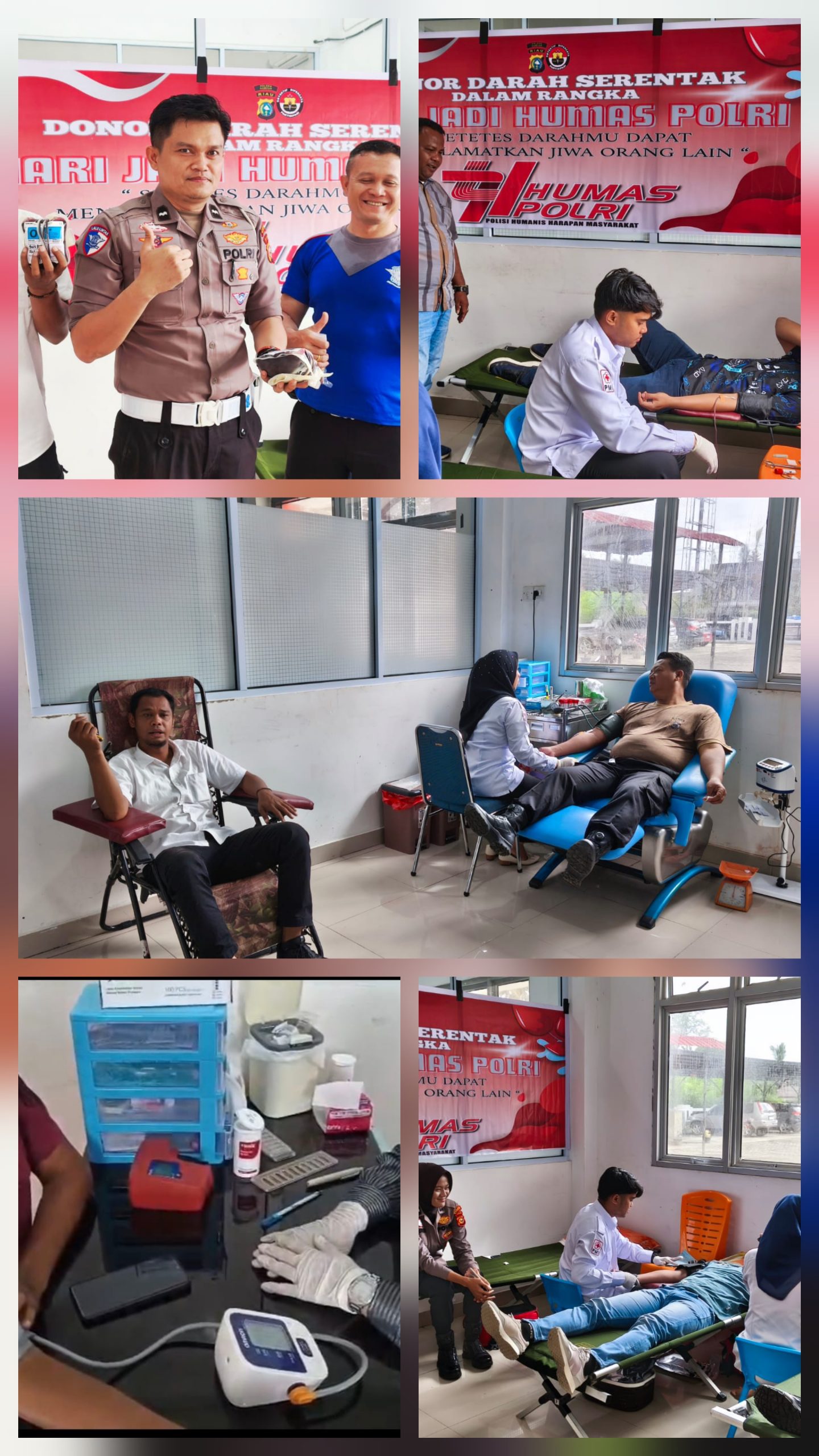 “Ini dalam Rangka Hari Jadi ke-74 Humas Polri dengan tema” Polisi Humanis Harapan Masyarakat ” dan Humas Polri kita dengan suka mendonor darah untuk kepentingan orang banyak, dan bisa membantu sesama,” Jelasnya Kasi Humas