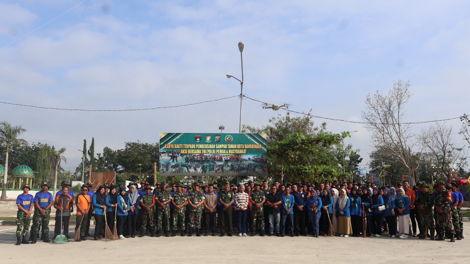 Sinergi TNI, Polri, dan Pemda Bersihkan Taman Kota Bangkinang demi Lingkungan Sehat
