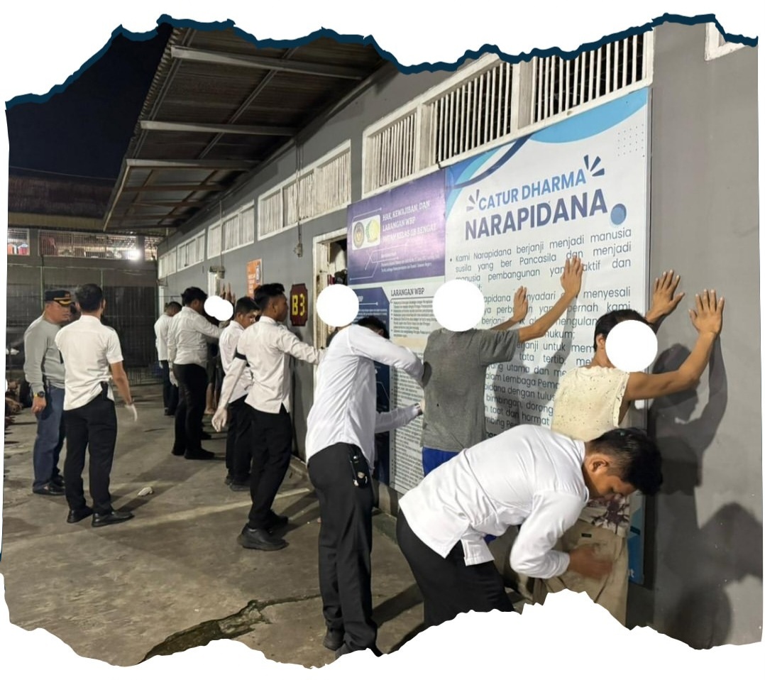 Razia dilaksanakan pada salah satu blok hunian oleh jajaran pengamanan Rutan Kelas IIB Rengat bersama APH dari TNI & POLRI dari wilayah sekitar, kegiatan ini dipimpin langsung oleh Kepala Kesatuan Pengamanan Rutan (Ka. KPR) bersama staf pengamanan dan CPNS. Pelaksanaan kegiatan dilakukan secara humanis, tertib, serta berpedoman pada Standar Operasional Prosedur (SOP) yang berlaku. Dari hasil penggeledahan, petugas menemukan sejumlah barang terlarang yang tidak seharusnya berada di dalam kamar hunian WBP seperti barang dari bahan kaca dan besi.