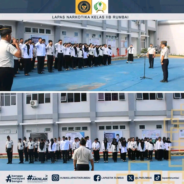 Pekanbaru, Jurnalhukrim.com – Kepala Seksi Administrasi Keamanan dan Ketertiban Lembaga Pemasyarakatan (Kalapas) Narkotika Kelas IIB Rumbai, Edoward Nikelini Bangun bertindak sebagai pembina yang ikut serta didalamnya pejabat struktural dan dihadiri oleh seluruh ASN lingkup Kantor Lapas Narkotika Kelas IIB Rumbai, Senin (5/1/2026).